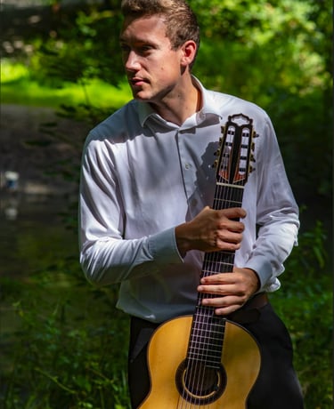Nathan joined in 2018 the Royal Conservatory of Liège, Belgium, in the class of Hughes Kolp and Adrien Brogna. There, he obtained a Master’s degree in Pedagogy of the guitar and a Master's degree in classical guitar, 'soloist' specialization, with the Highest Honors. He also studied at the Franz Liszt Academy in Budapest, Hungary with Andras Csaki, and he's currently pursuing a Master of Music under Carlo Marchione’s guidance at the Conservatorium Maastricht.